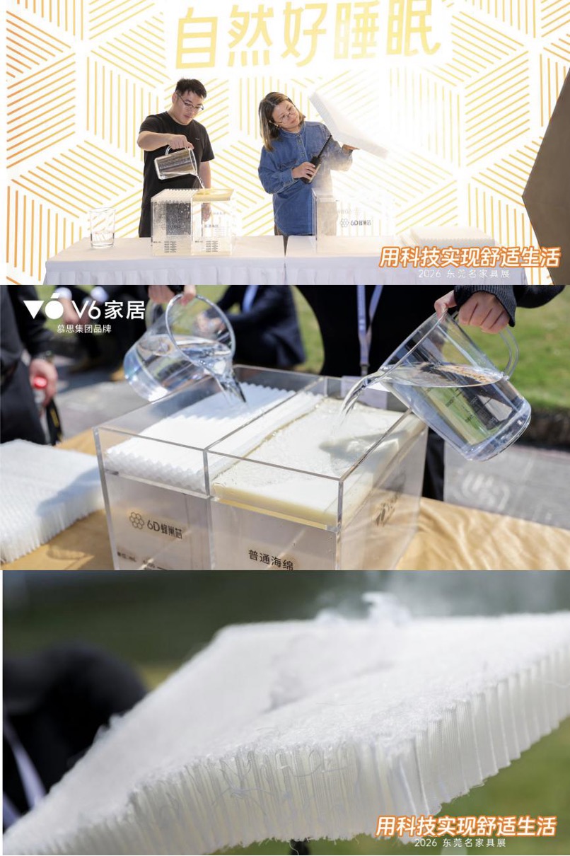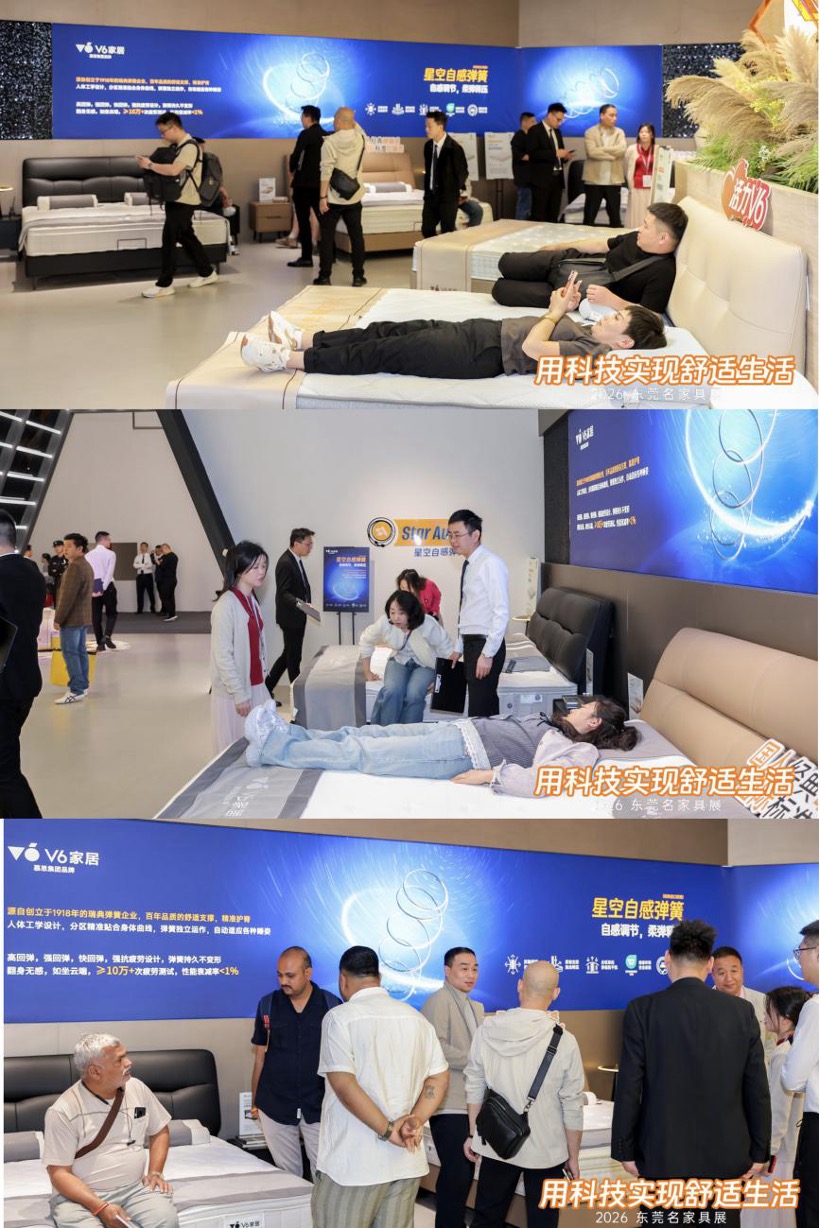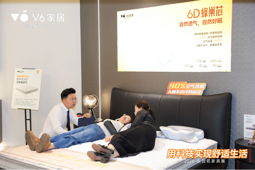 米兰6D蜂巢芯+星空自感弹簧,V6家居以舒适内核惊艳2026东莞展!