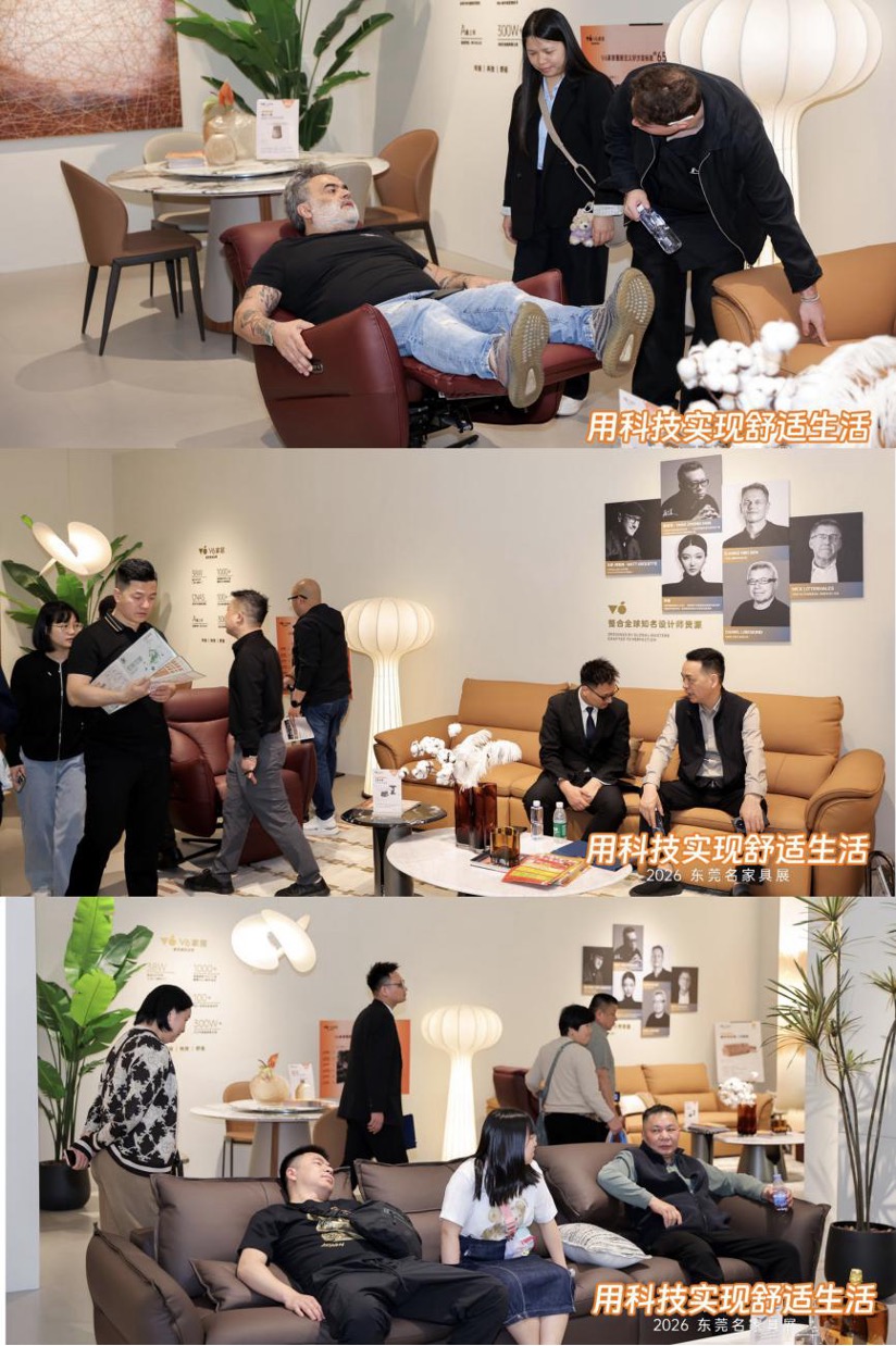 作为慕思集团旗下的年轻力量,V6家居经历了“卖产品”的 1.0 阶段、“卖空间”的 2.0 阶段。而面对市场的激烈竞争、消费者诉求升级,V6家居秉持“年轻设计、科技内核、舒适体验”的品牌理念,加速战略转型,以科技内核驱动品牌的“高质生长”,正在进入“卖舒适”的3.0阶段。本次深度参展东莞名家具展,不仅是V6家居展示新品实力、链接市场需求的重要契机,更是品牌践行“用科技实现舒适生活”战略的生动体现。